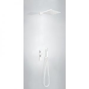 Комплектація: вбудований змішувач з термостатом, верхній душ 300х300 мм з шарніром, ручний душ з антивапняним покриттям, шланг SATIN1,5 м. - біле матове покриття, механізм проти скручування