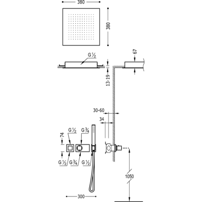 Верхній душ:380х380 мм