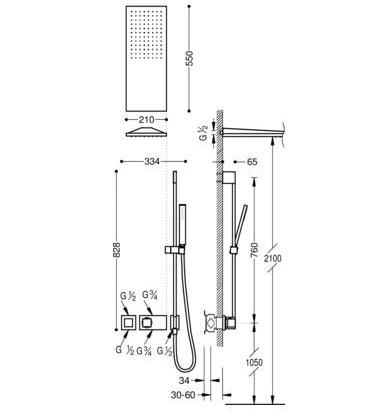 Верхній душ:210х550 мм