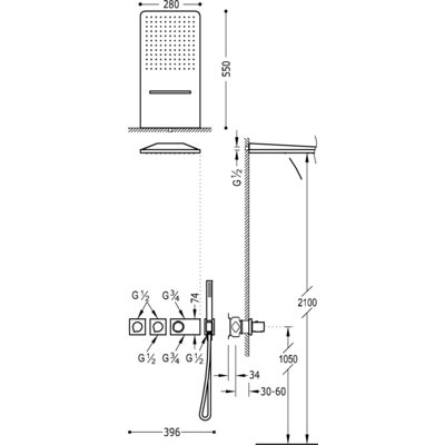 Верхній душ:280x550 мм