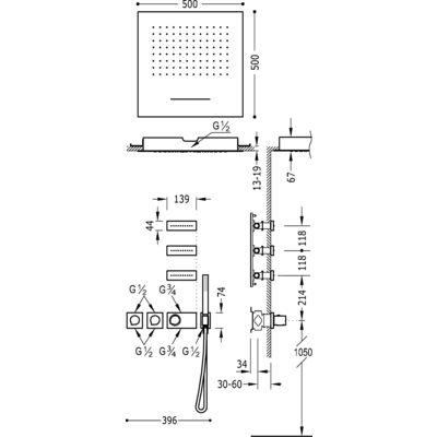 Верхній душ:500х500 мм