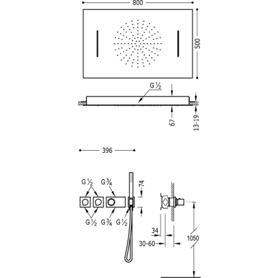 Верхній душ:800х500 мм