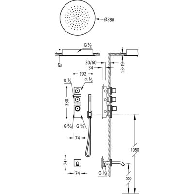 206.353.02.BM Вбудована термостатична система для душу BLOCK SYSTEM