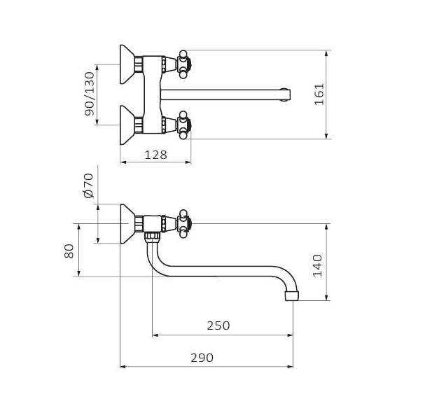 1) Змішувач для кухні GRB Cocinas 1866 двовентильний настінний хром