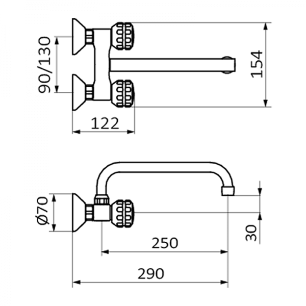 1) Змішувач для кухні GRB Cocinas двовентильний хром