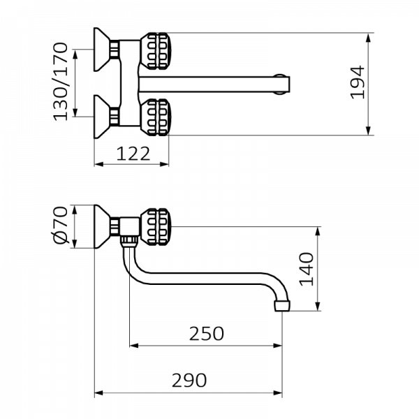 1) Змішувач для кухні GRB Cocinas настінний двовентильний хром