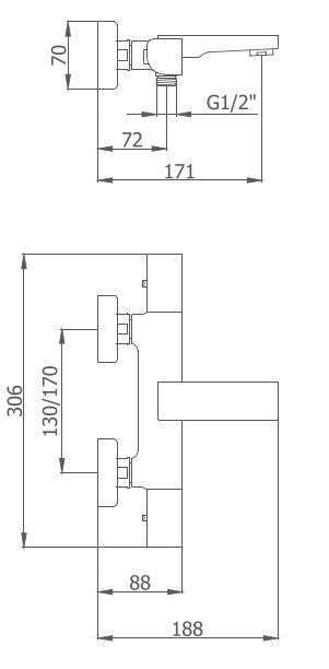 Вбудовані змішувачі у стіну укомплектовані декоративними пластинами прямокутної форми. Змішувачі можуть бути на один, два та три споживачі для води.