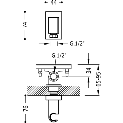 Монтаж верхнього душу:Вбудований зі стіни