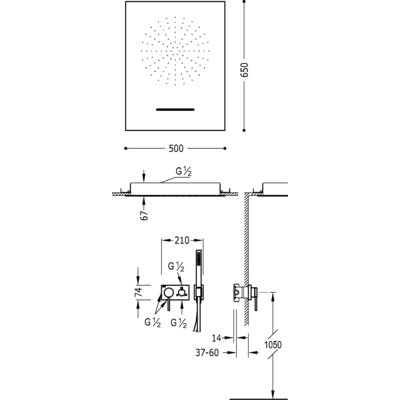 Комплектація:Душ.система: верхній душ ("дощ") + вбудований змішувач + ручний душ з утримувачем