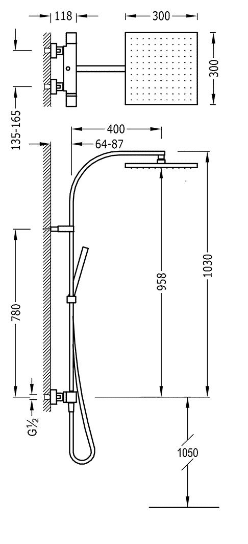 Верхній душ:300х300 мм