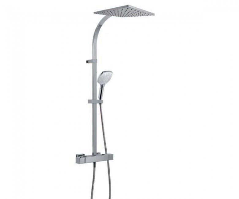 Душова стійка з термостатом, верхнім та ручним душем, душовим шлангом та тримачем ручного душу.
