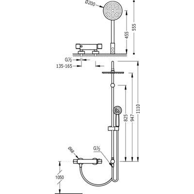 Верхній душ: 200х200 мм