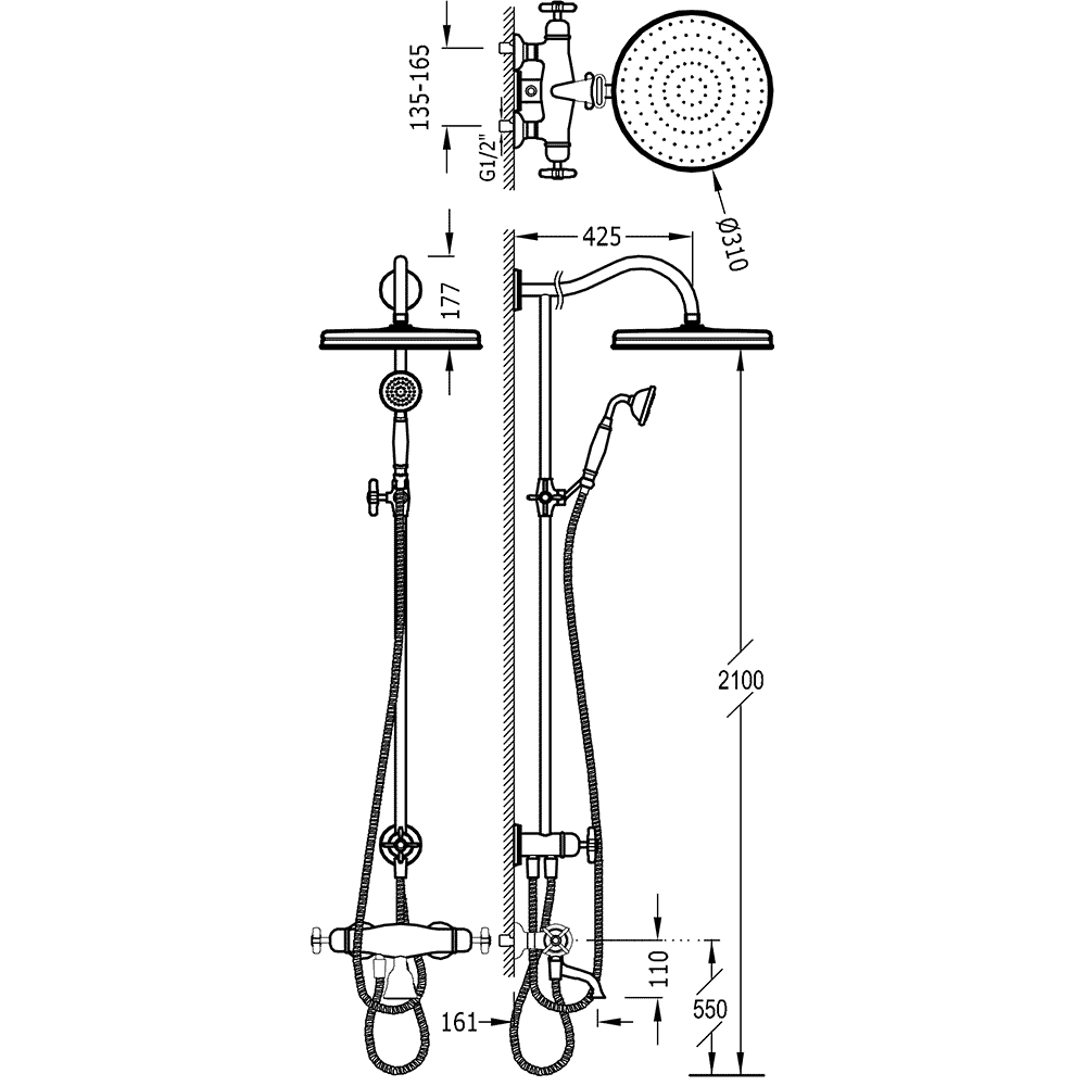 Верхній душ:D310 мм