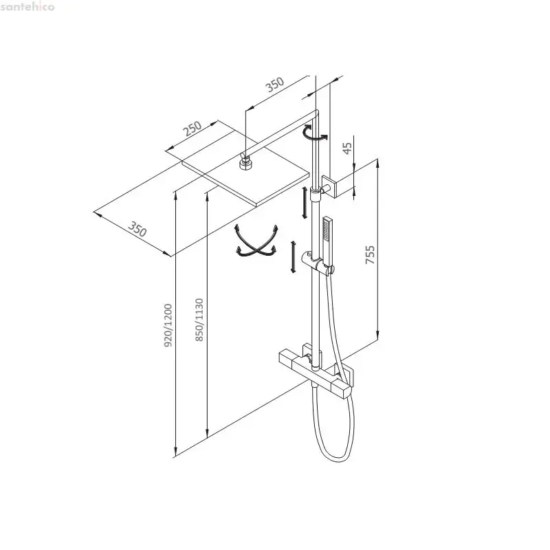 Верхній душ:250×350 мм