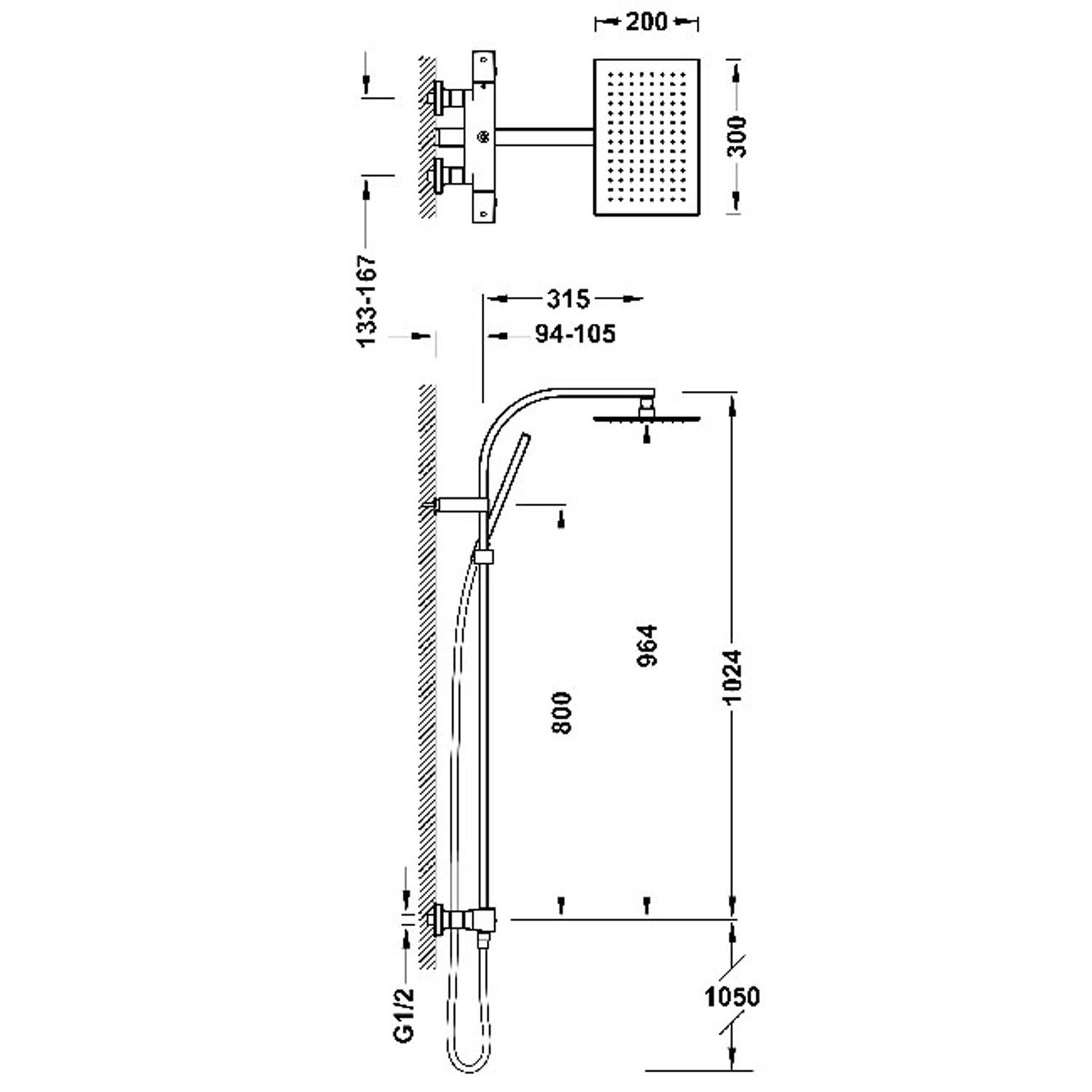 З інвертором, інтегрованим у регулятор потоку.· Квадратна ручка.· Регульована душова лійка з нержавіючої сталі: 300x200 мм.· Регульована та розсувна опора для ручного душу.· Ручний душ із латуні проти накипу.· Сатиновий шланг.