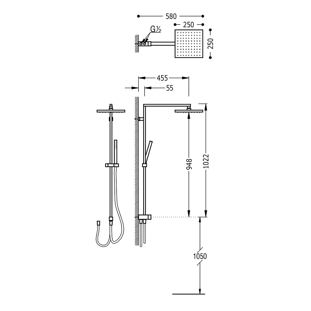 Незнімний душ 250х250 мм. Знімний душ з антивапняним покриттям. Шланг SATIN. Підходить до душової та ваннодушової системи