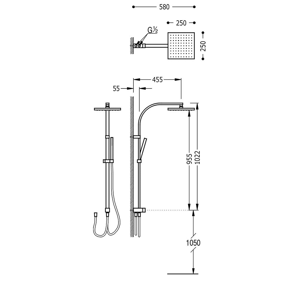 Верхній душ:250х250 мм