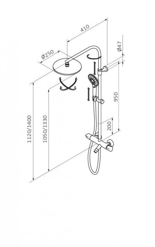 Верхній душ:D250 мм