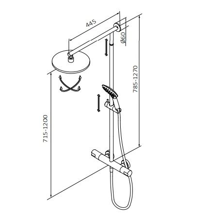 Верхня лійка діаметром 250 мм подарує вам відчуття справжнього тропічного дощу, а можливість регулювання висоти від 780 до 1270 мм дозволить адаптувати систему під будь-які параметри користувачів.