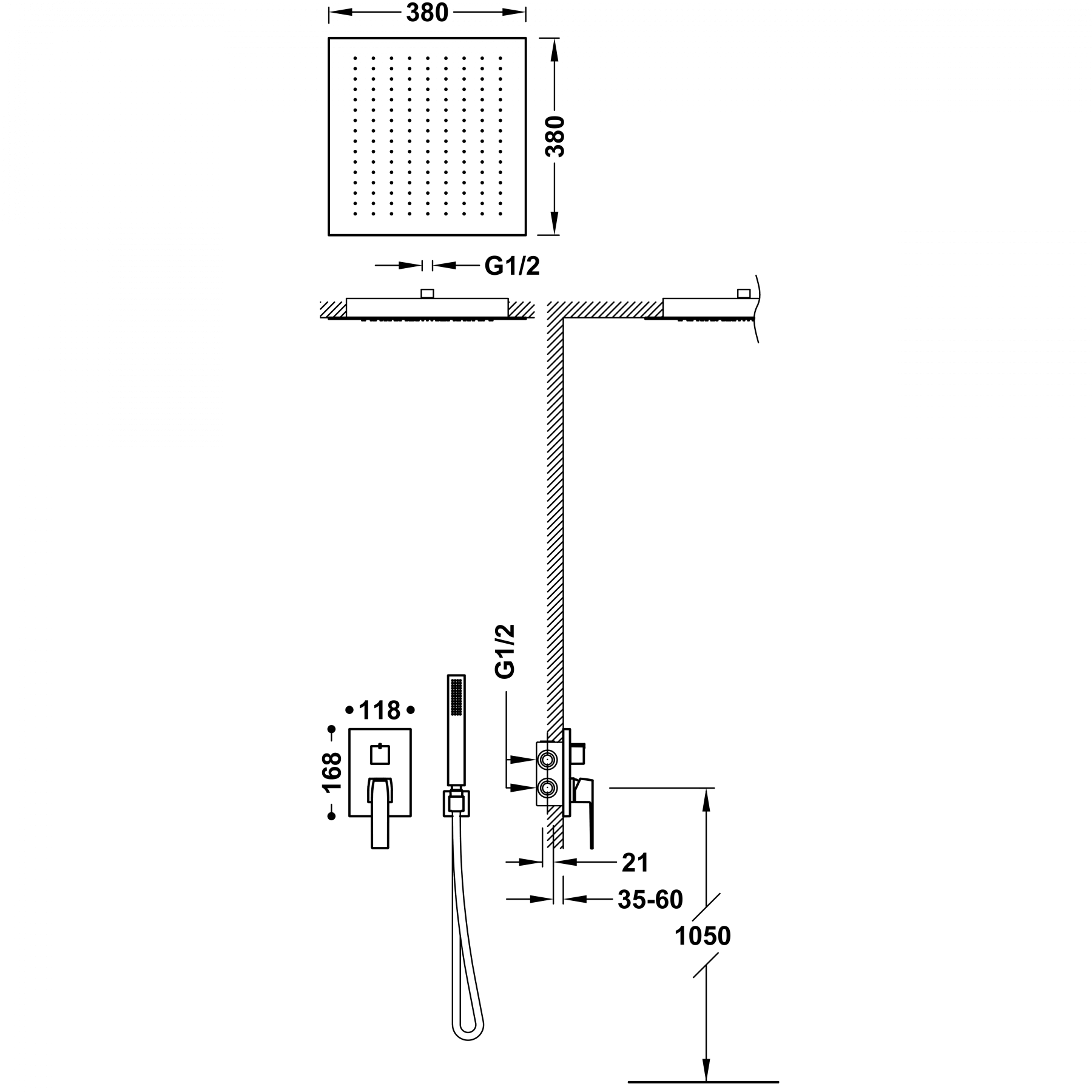 Верхній душ:380х380 мм