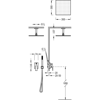 Комплектація:Душ.система: верхній душ ("дощ") + вбудований змішувач + ручний душ з утримувачем