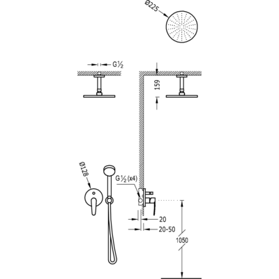Верхній душ: d225 мм