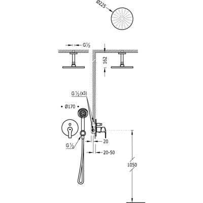 Верхній душ: d225 мм