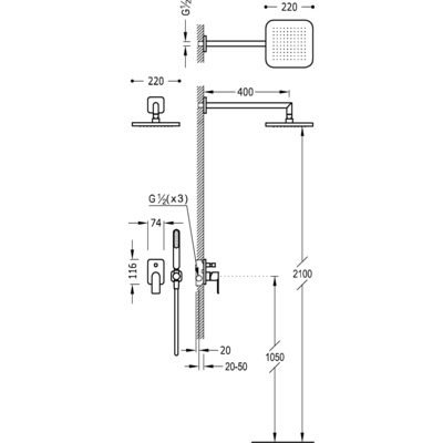 Верхній душ:220х220 мм