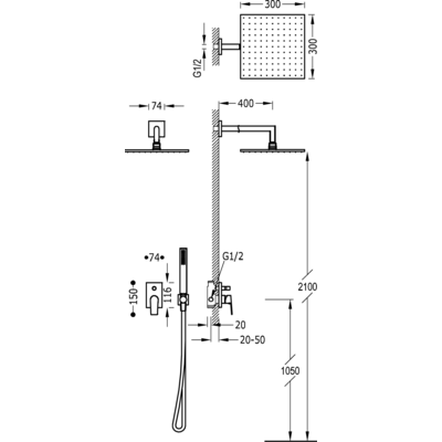 Верхній душ:300х300 мм