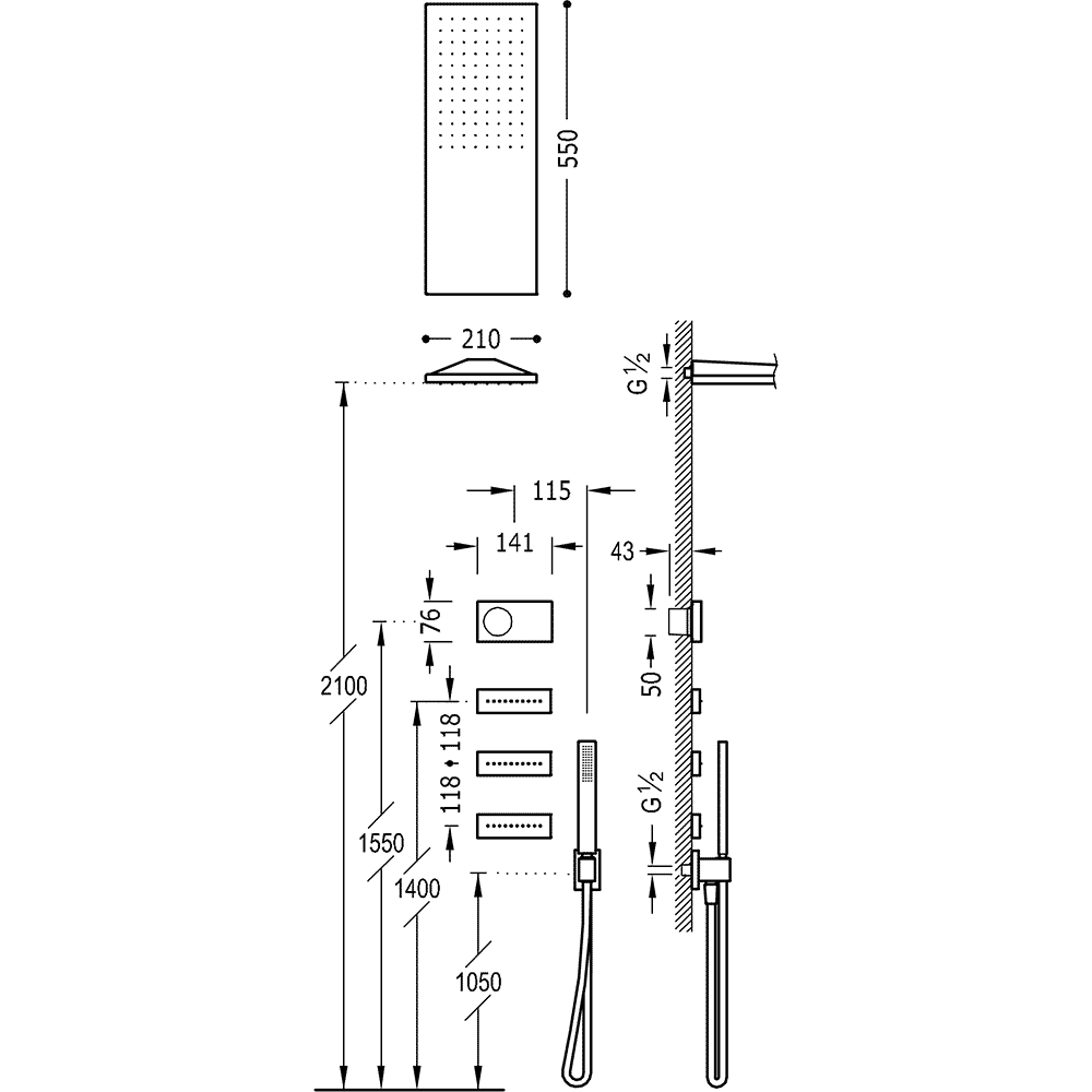 · Розпилювач душовий INOX настінний 210x550 мм.