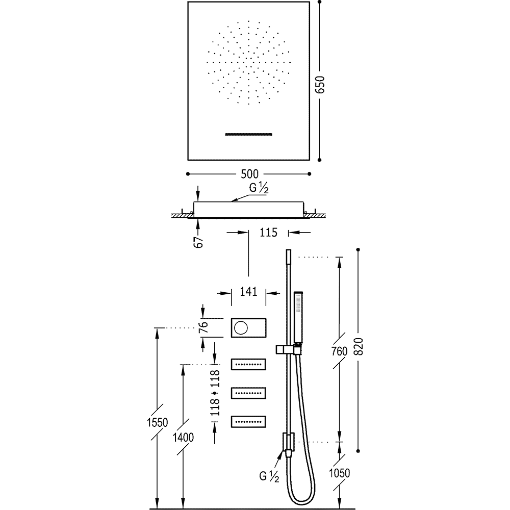 Верхній душ:500х650 мм
