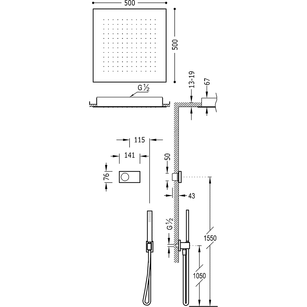 · Розпилювач душовий INOX стельовий 500x500 мм.