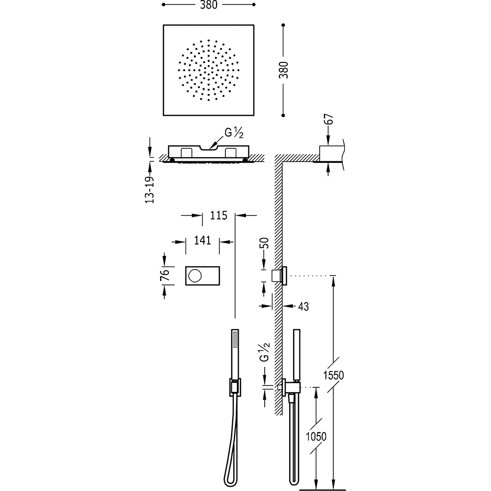 Верхній душ:380х380 мм