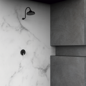 Одноважільний душовий набір із 1 чорним виходом. Вбудований змішувач Black black / Артикул: 531120 Насадка для душу 1866 Adjustable 1F ø200 мм - ABS / Артикул: 058291 Рожок 1866 290 мм - Латунь / Артикул: 058213