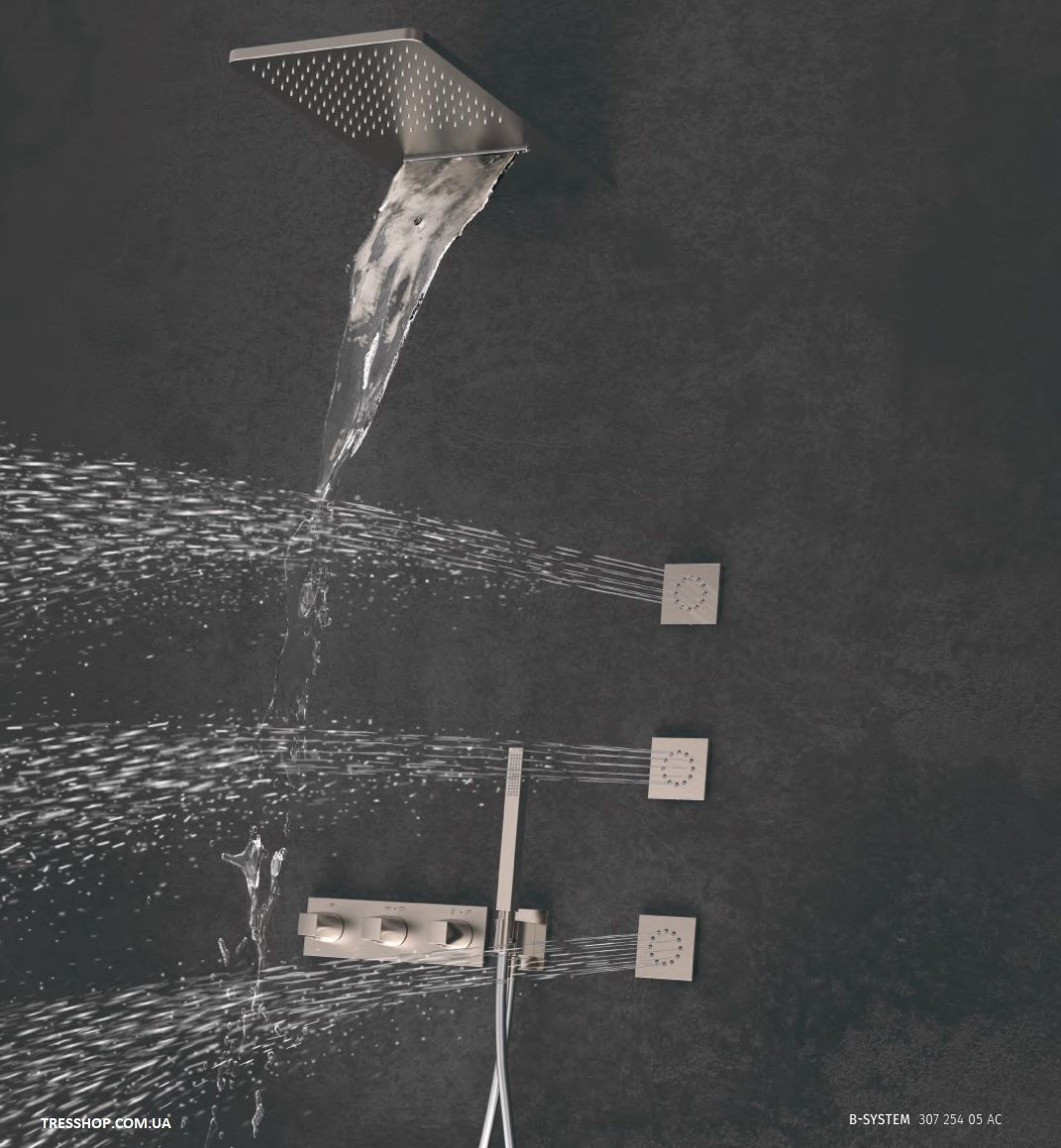 Опис термостатичного душового комплекту Tres B-system, нержавіюча сталь (30725405ac)