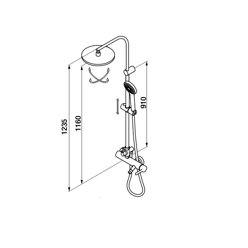 Комплектація:Змішувач. душова стійка. верхній душ. ручний душ. шланг. Інструкція монтажу. гарантійний талон