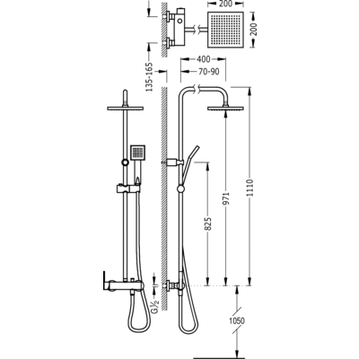 Комплектація:Душова стійка з ручним душем та змішувачем
