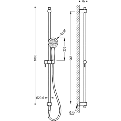 061.931.05 Ковзна штанга з ручним душем Tres Showers з настінним виведенням для води
