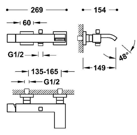10717002 Tres Cuadro Змішувач для ванни та душу з каскадним виливом