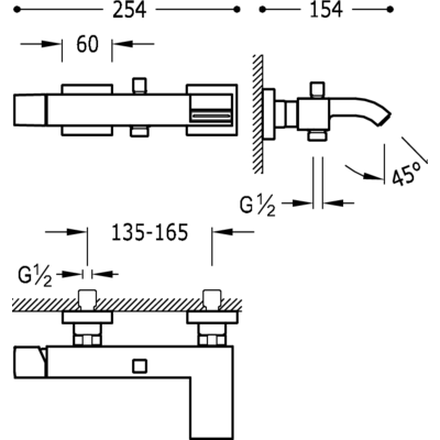 5071670203 Tres Cuadro Змішувач для ванни та душу з каскадним виливом