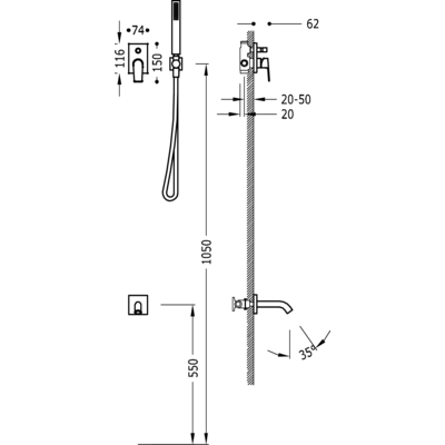 211.180.03.NM Tres Project Змішувач для ванни з ручним душем у комплекті