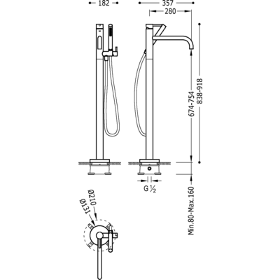 262.470.01.BM Змішувач для ванни Tres Study Exclusive