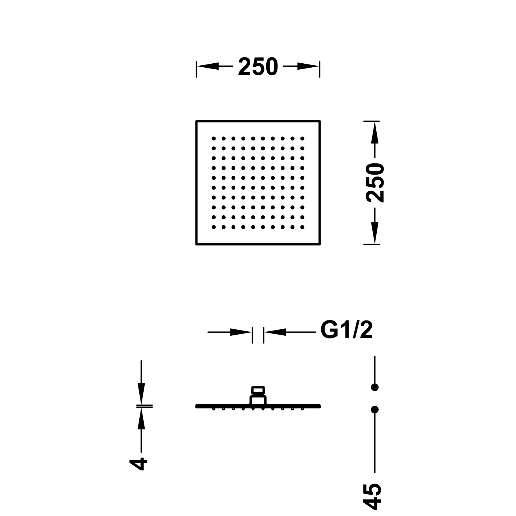 Верхній душ:250х250 мм