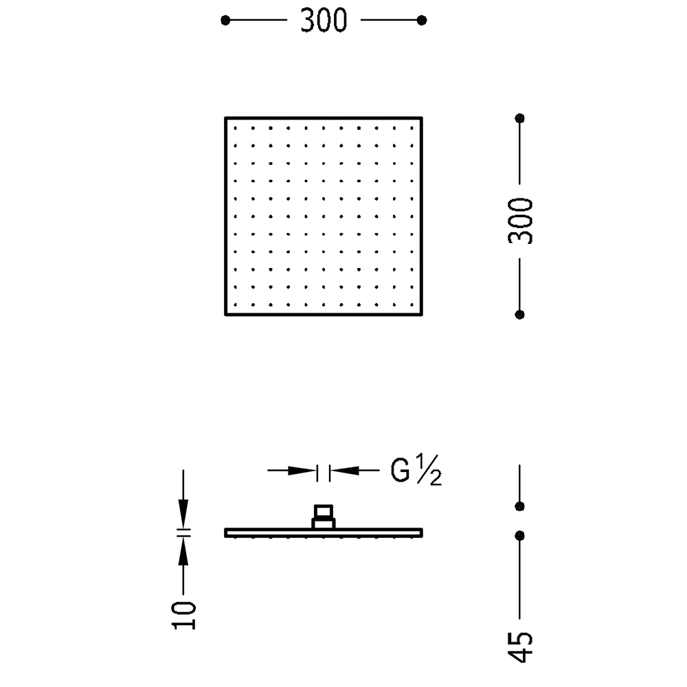 Верхній душ:300х300 мм