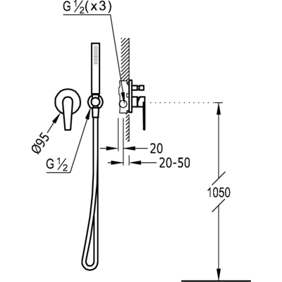 Одноважільний вбудований змішувач із затвором та регулятором потоку