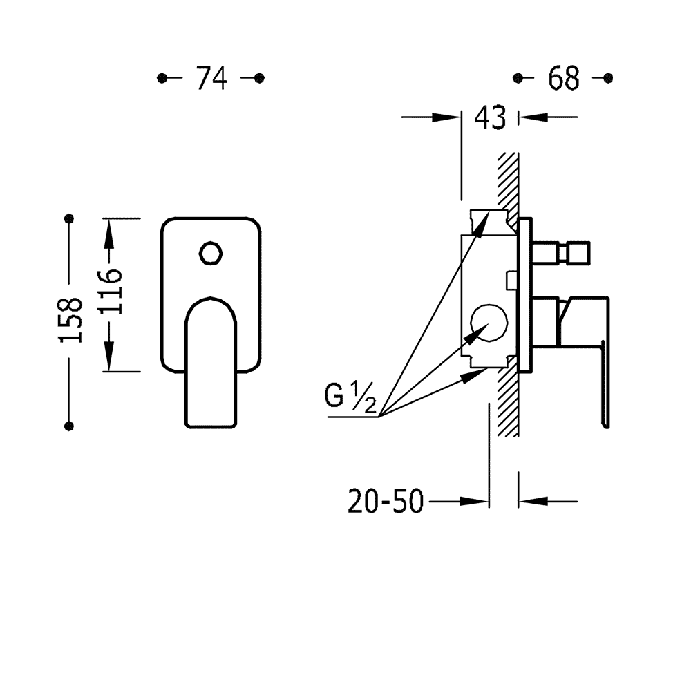 Одноважільний вбудований змішувач (2 каналу) Tres 20018001AC, Tres, Вбудовувані змішувачі для ванни та душу