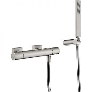 Комплектація: одноважільний змішувач з термостатом, ручний душ з антивапняним покриттям та регульованим тримачем, шланг SATIN 1,5 м. з механізмом проти скручування