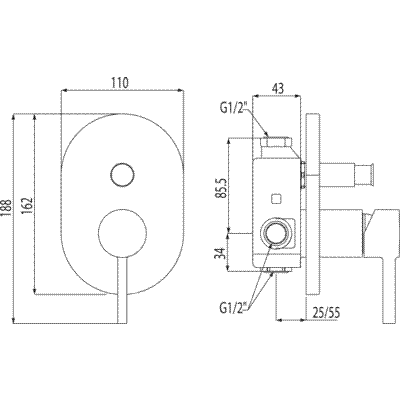 Одноважільний вбудований змішувач на 2 джерела