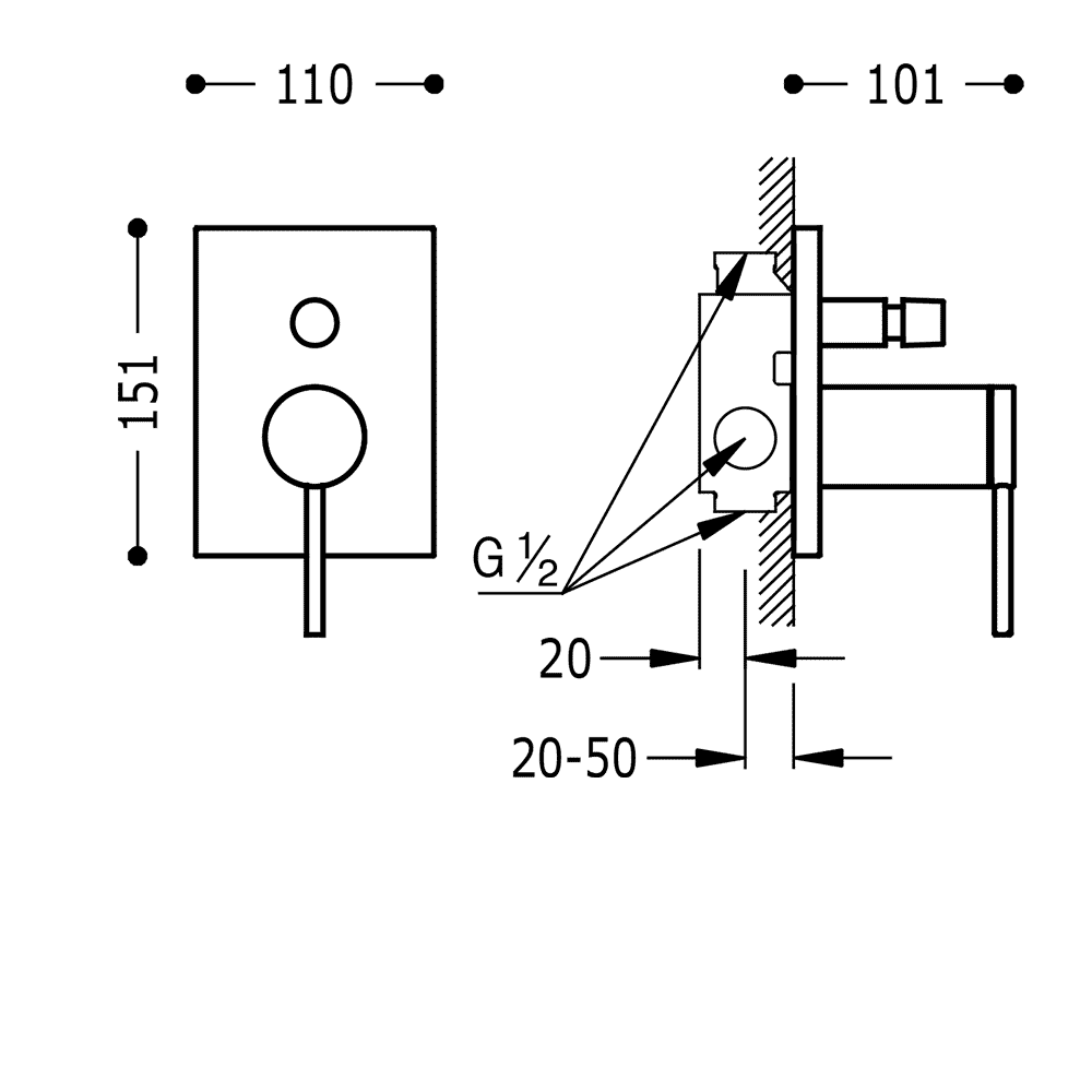 Tres Mono-Term Вбудований змішувач для ванни/душа