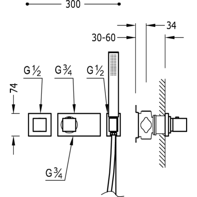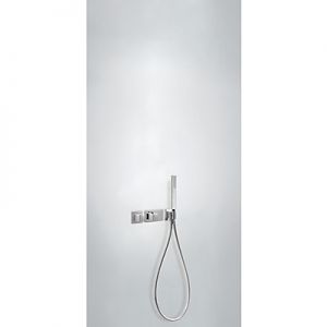 Комплектація: вбудований змішувач з термостатом, ручний душ з антивапняним покриттям, шланг SATIN1,5 м. - хромове покриття, механізм проти скручування